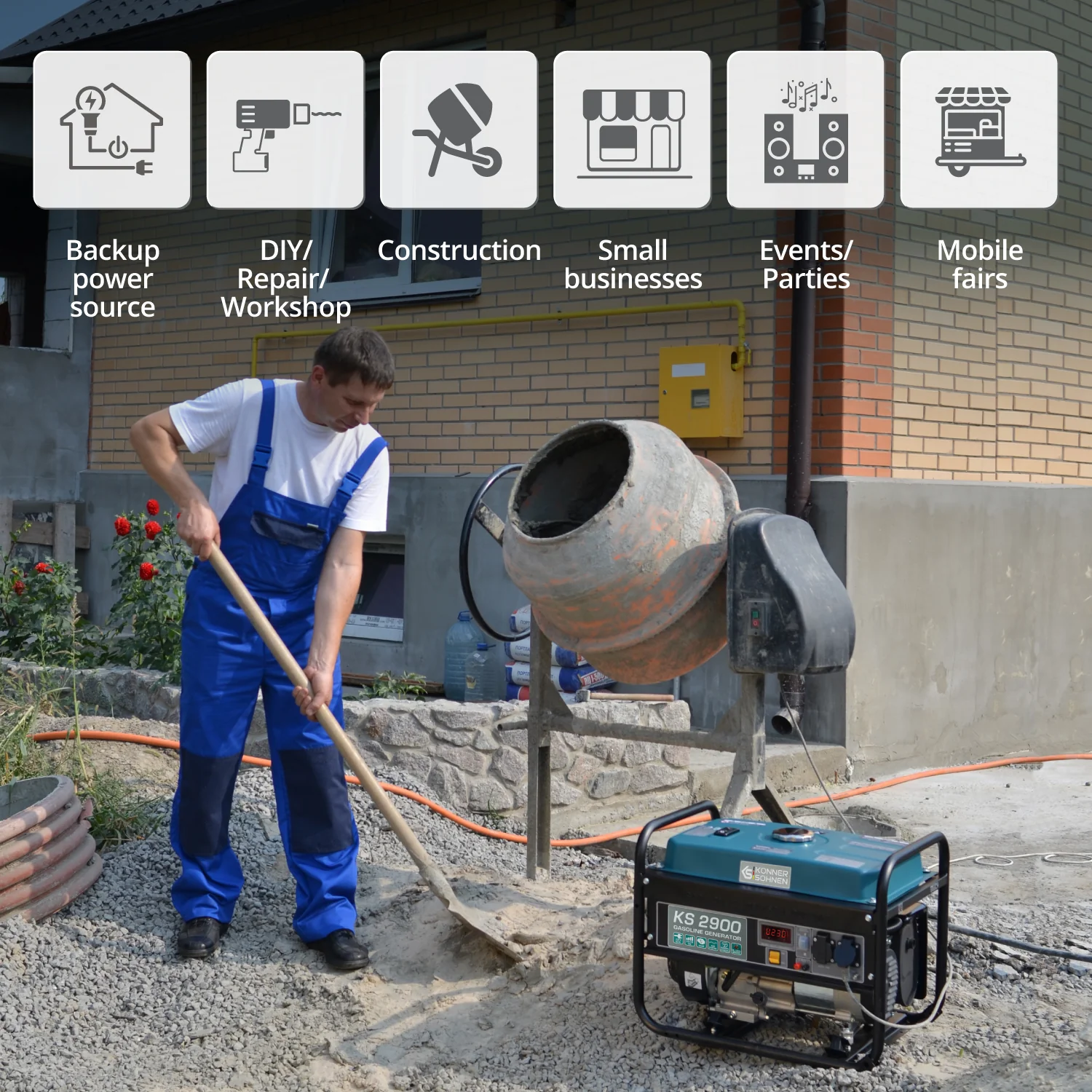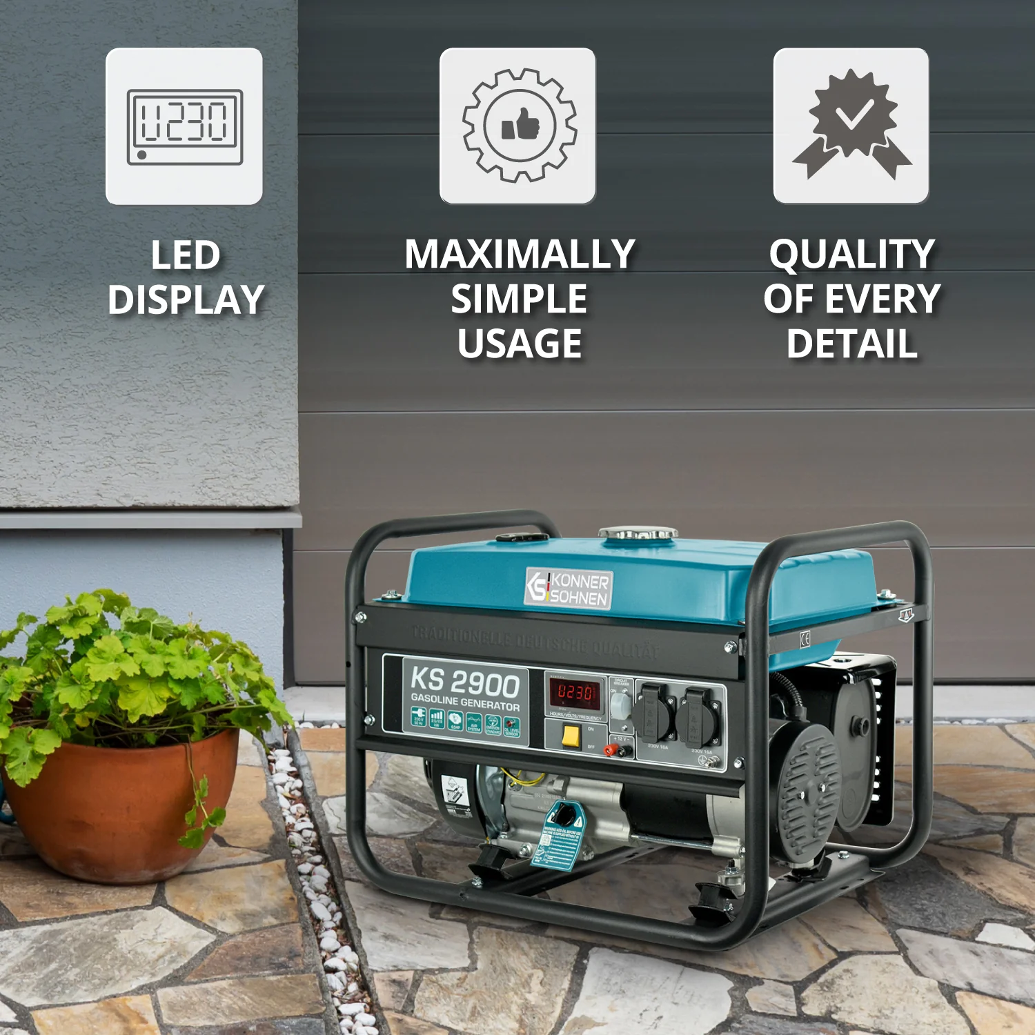 За Könner & Söhnen® Уважаеми клиенти и бизнес партньори на Könner & Söhnen ® Благодарим ви за интереса към нашите продукти. Надяваме се, че устройствата на Könner & Söhnen ® ще се превърнат във Ваши надеждни помощници в Германия! Продуктите на марката Könner & Söhnen ® са резултат от дългогодишния опит на немски специалисти, които са взели само най-доброто от световноизвестните марки и са се поучили от техните грешки. Генераторите и градинската техника от марката Könner & Söhnen ® са разработени в Германия, за да осъществят концепцията "Volkstechnik" като синоним на качество и достъпна цена. Марката K&S преследва целта да направи ТРАДИЦИЯТА И КАЧЕСТВОТО ЗА ВСИЧКИ достъпни за всеки на разумна цена. Честната, старателна изработка и удовлетвореността на клиентите са трайни ценности, които се предават от поколение на поколение, от майстор на чирак, от баща на син, от производител на потребител. С цел да гарантираме на нашите клиенти тествани качествени продукти като електрогенератори и градинска техника на най-добрите цени. Поради наличието на много германски марки, които заемаха своите ниши в горните ценови сегменти, беше необходима нова марка, която да предоставя високо качество на ниска (достъпна) цена. Така се появи марката Könner & Söhnen ® . С модернизираната гама от двигатели за електрогенератори собствено производство, собственикът на марката Könner & Söhnen ® най-накрая реши да разшири гамата. Култиваторите и водните помпи с марката Könner & Söhnen ® вече са достъпни за германските потребителидостъпни. Експертите на нашата компания положиха всички усилия, за да постигнат безпрецедентно качество, което може да бъде закупено на достъпна цена с надеждно обслужване. Всички продукти се сглобяват под постоянния надзор на германски експерти в заводите, които произвеждат генератори и градинско оборудване за водещите марки в Европа и Северна Америка, и се проверяват внимателно на различните етапи от производството. Всички наши продукти отговарят на европейските и международните стандарти за качество, икономичност и екологосъобразност, както и на всички изисквания за клас на вредни емисии и шумово замърсяване. Гамата от двигатели, използвани за генераторите, култиваторите и водните помпи на марката Könner & Söhnen ®, е резултат от селекция от водещи световни производители на двигатели и постоянни тестове. За марката Könner & Söhnen ® се разработват и лицензират изключително двигатели, които са уникални на пазара и са съобразени с профила на изискванията за тяхното използване. Непрекъснатият, индивидуален сериен номер на нашите двигатели гарантира постоянно и внимателно гарантиране на качеството на нашите продукти и услуги. Всички двигатели се подлагат на непрекъснати експлоатационни тестове, след което се разглобяват и проверяват за неизправности. Това гарантира по-висока мощност на двигателя с определеното номинално напрежение при продължителна употреба. Тъй като производителят отдава голямо значение на търсенето на пазара и нуждите на клиентите, гамата от генератори и градински инструменти с марка Könner & Söhnen ® отговаря на нуждите на всеки отделен клиент. За да бъде в крак с променящата се технологична среда, Könner & Söhnen ® непрекъснато актуализира продуктовата си гама и въвежда нови технологии, които допринасят за надеждността, екологичната съвместимост и оперативната ефективнос