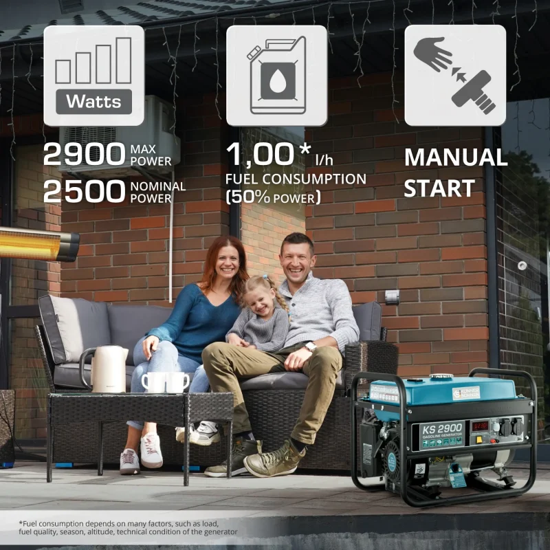 Оборудван с ръчен и електрически стартер, генераторът осигурява лесно и бързо стартиране при всякакви условия.