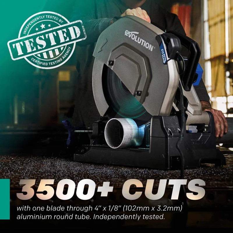 Максимум производителност: С до 3500 разреза на диск, EVOMAX осигурява водеща на пазара производителност – издържа до 2 пъти по-дълго от водещите 355 мм конкурентни остриета –  Независимо тестване от сертифицирана агенция чрез рязане на кръгла алуминиева тръба с размер 4 x 1/8 (101,6 мм x 3,2 мм). Тестването е извършено от SGS и TUV.