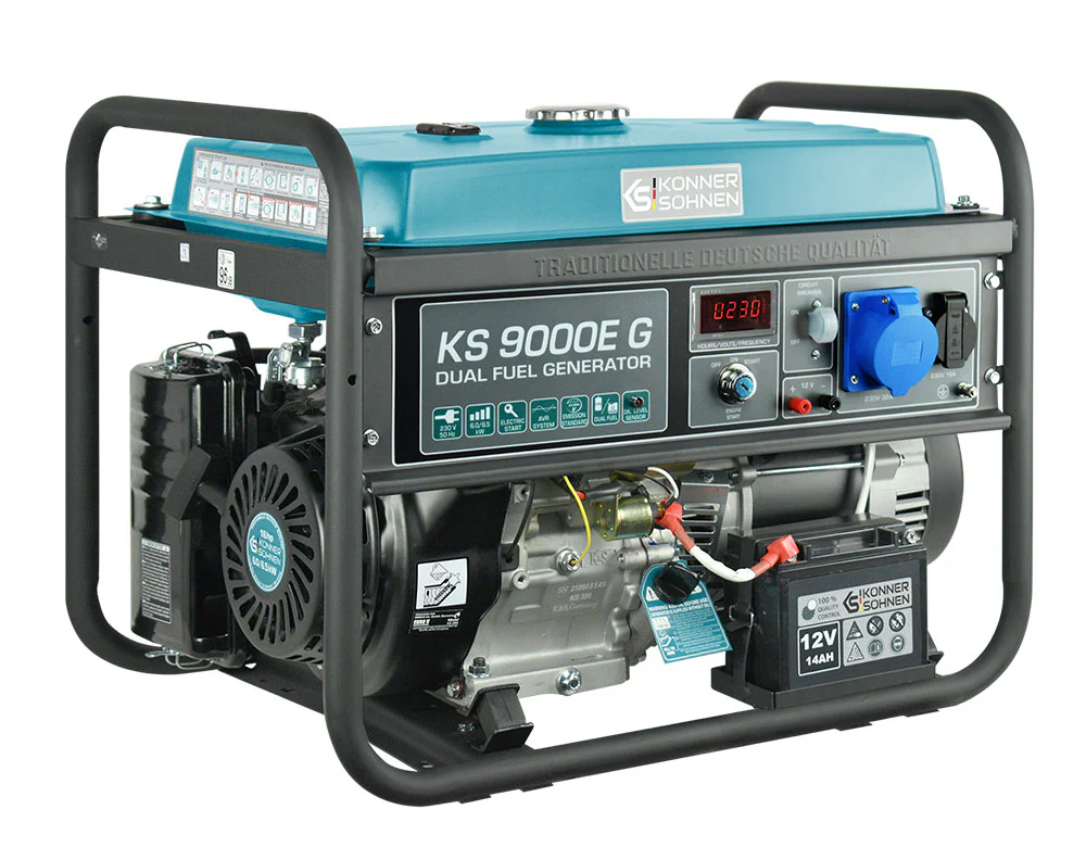 Работата на газ увеличава живота на двигателя. Всички необходими аксесоари за свързване на газова бутилка, са налични: генераторът разполага с маркуч и два редуцира за налягането на газта. Генераторът НЕ Е подходящ за свързване към газопровод. При необходимост можете лесно да превключите горивото. Задвижването се осъществява от едноцилиндров, четиритактов двигател с въздушно охлаждане.