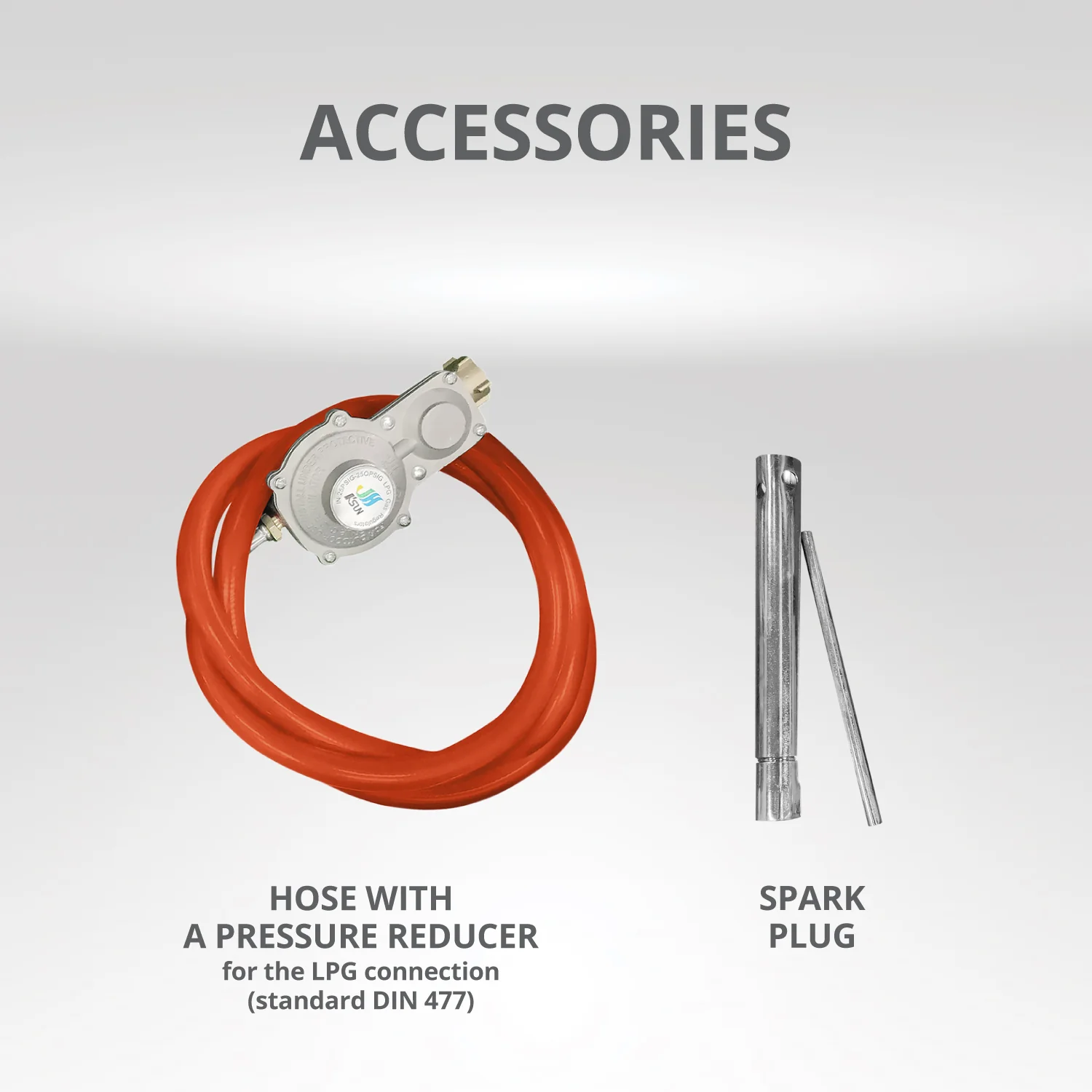 Окомплектовката включва всичко необходимо за да използвате втечнен газ като гориво: