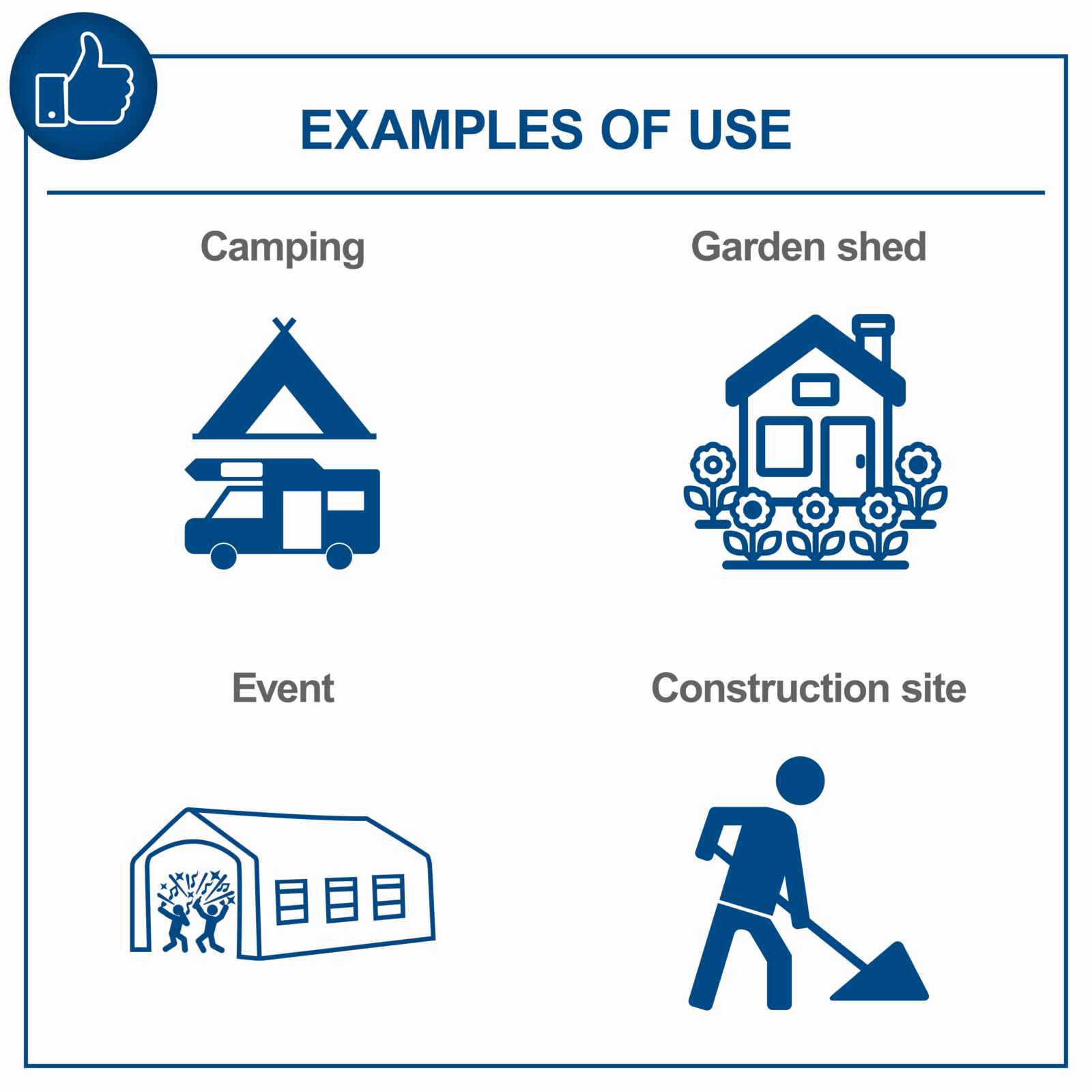 - Универсалност: Подходящ за строителни обекти, къмпинг, градински работи и аварийни ситуации.