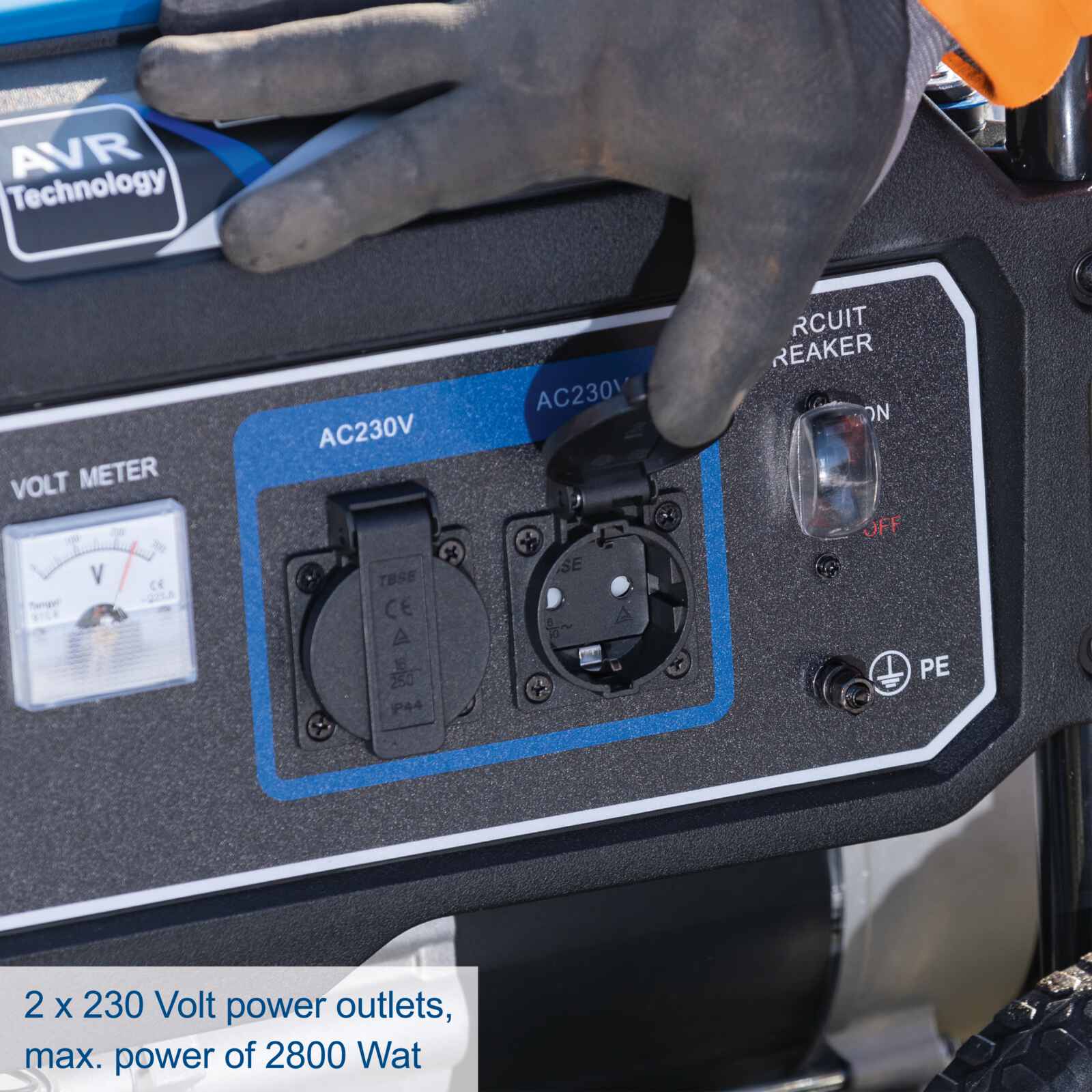 С 2800 W максимална мощност и 2500 W номинална мощност, генераторът е подходящ за множество електрически устройства и инструменти.