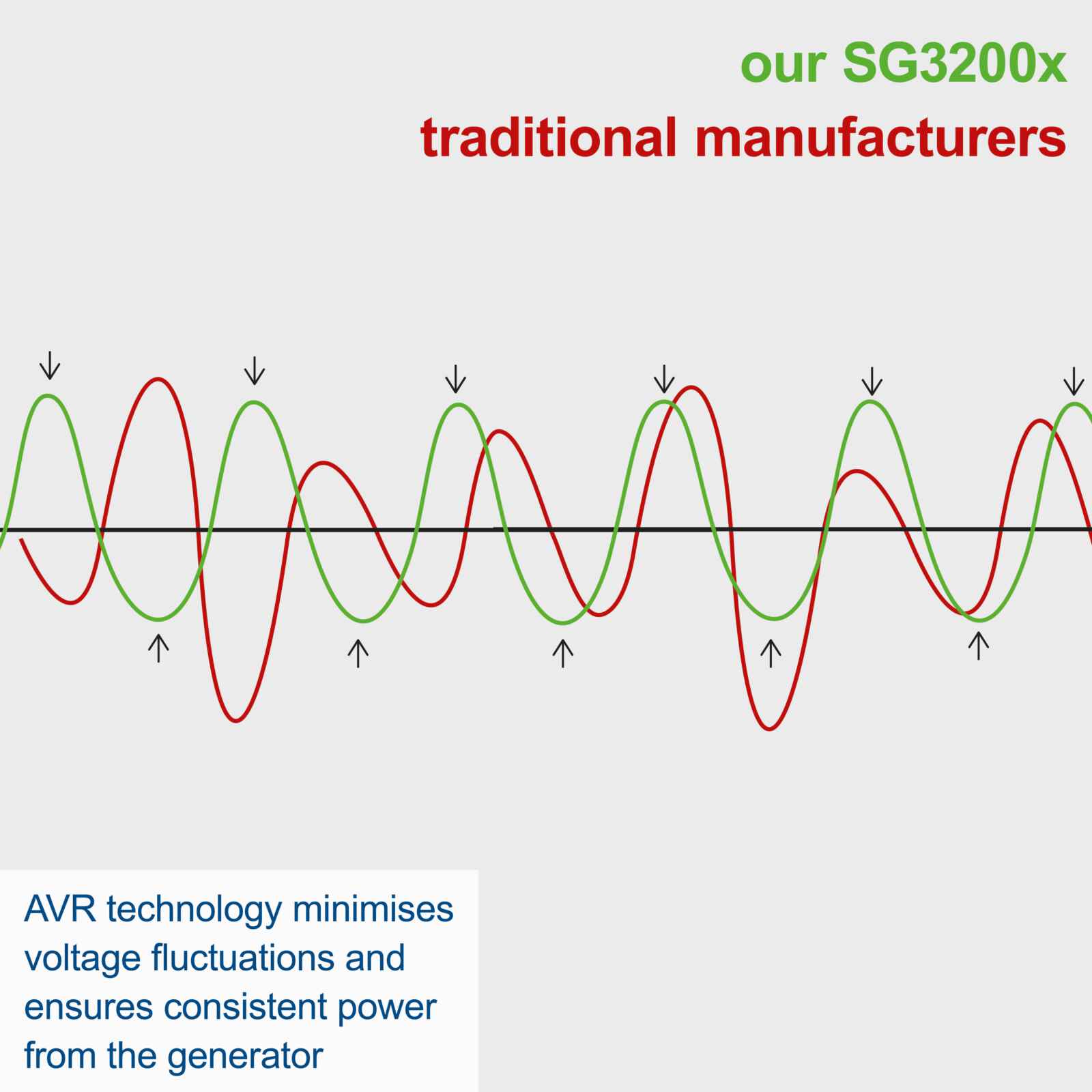 Интегрираната AVR система минимизира колебанията на напрежението, осигурявайки защита за чувствителна електроника и тежко стартиращи устройства.