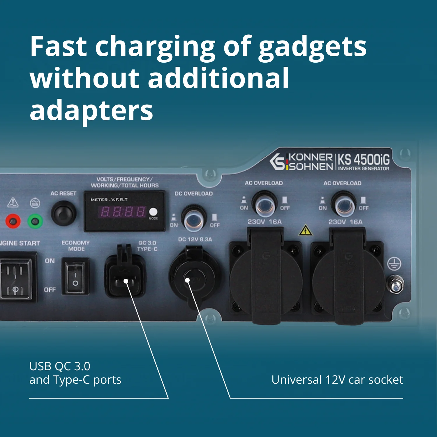 Инверторните генератори Könner & Söhnen са оборудвани с висококачествени безчеткови алтернатори с 100% медна намотка. Алтернаторът, монтиран върху постоянни магнити и затворен в пластмасов корпус, издържа максимални натоварвания без повреди — осигурявайки дълготрайна работа.