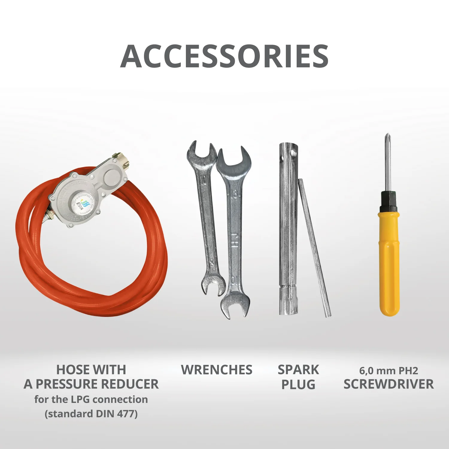 Комплектът включва всичко необходимо за използване на LPG (втечнен газ) като гориво: