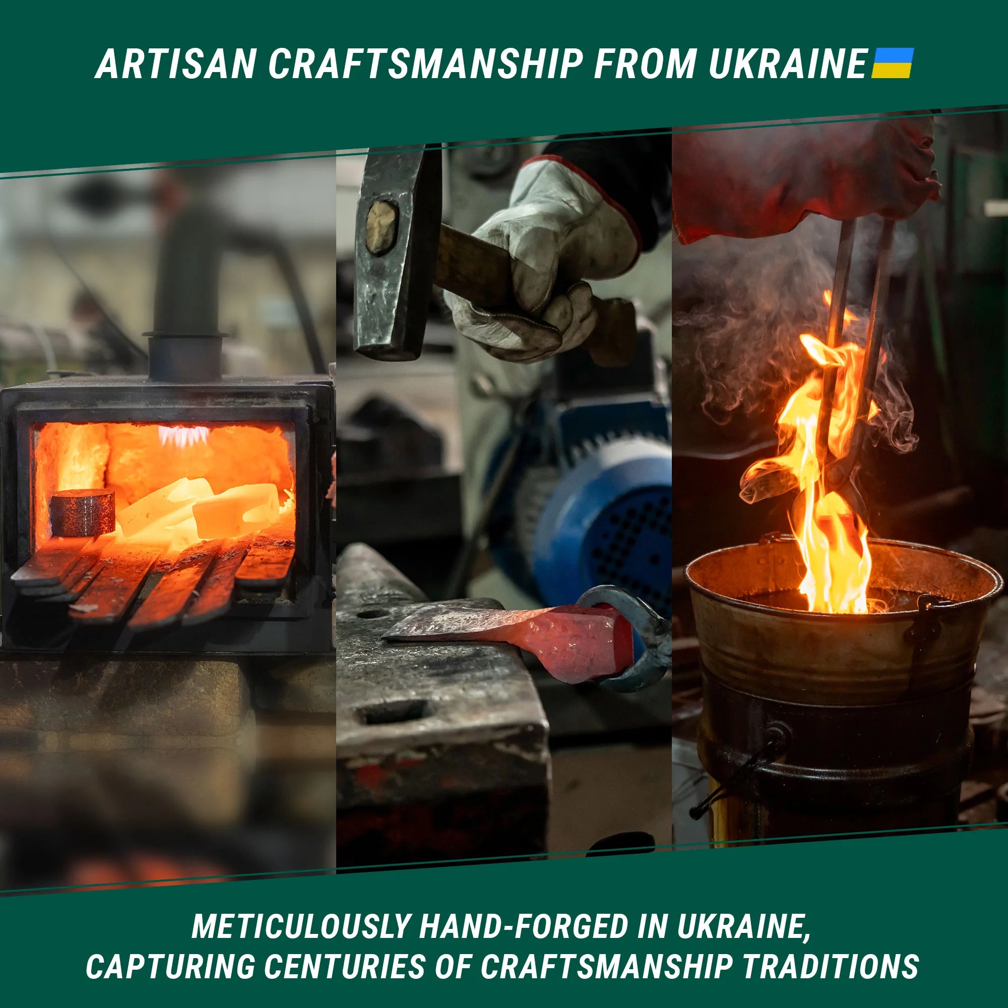 Острието е изковано от въглеродна стомана 1066, известна със своята здравина и издръжливост. С твърдост 56–58 HRC (Степен на Рокуел), острието запазва остротата си дори след продължителна употреба, осигурявайки леко и прецизно рязане при всеки замах. Здравото фиксирано острие гарантира стабилност и увереност при изпълнение на фини и детайлни задачи.