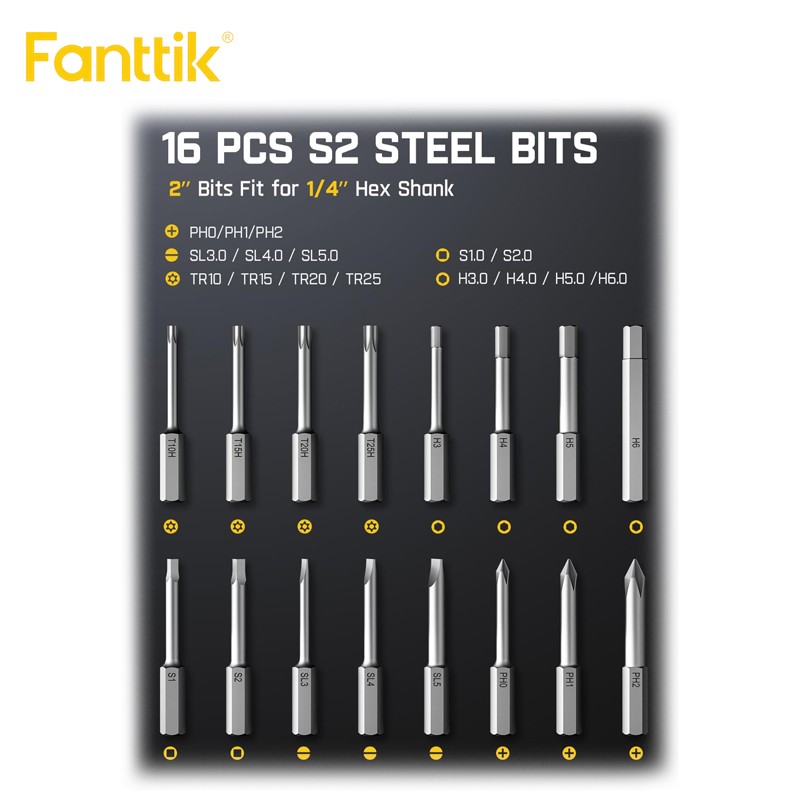 С 16 бита в 5 категории, мощна електрическа отвертка.