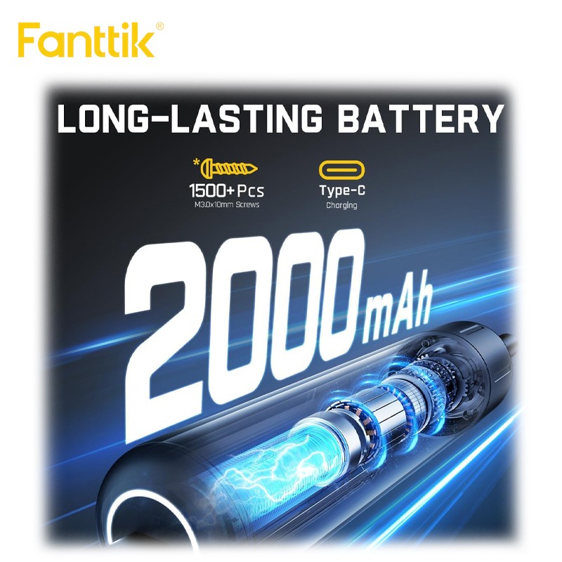 С вградена 2000 mAh акумулаторна батерия, сетифицирана за 340 винтове (3.5*20 мм).