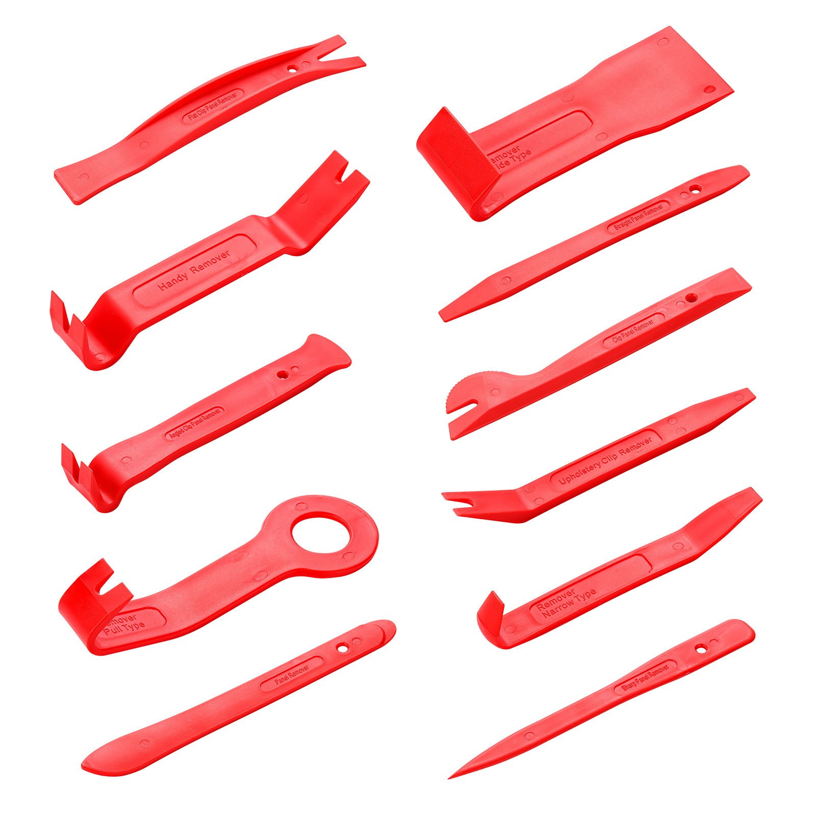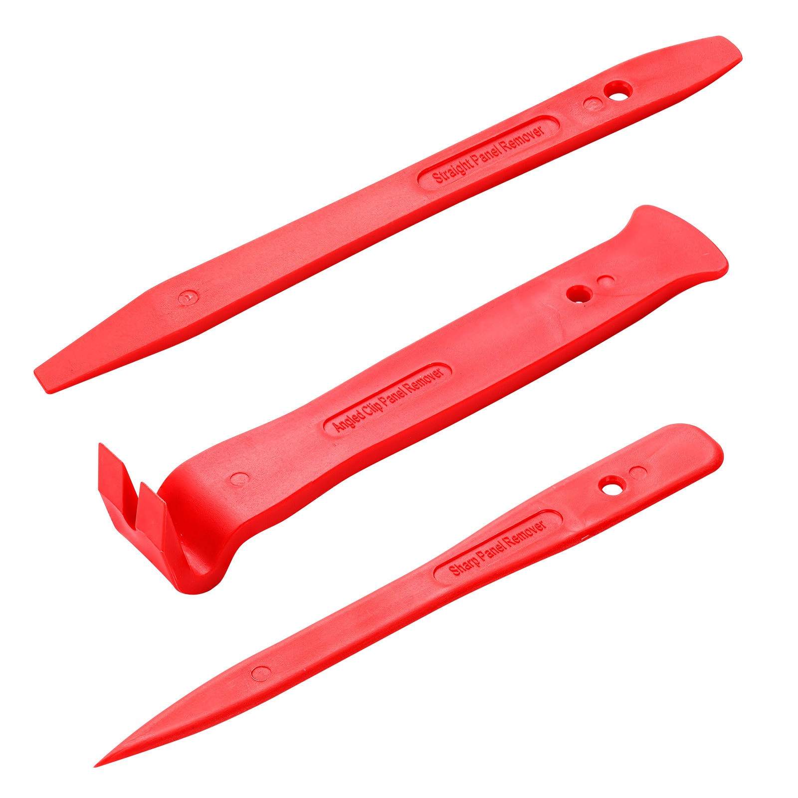 Извършете сами работа по декоративни лайстни, гумени уплътнения, арматурно табло, панели на вратите, облицовки на покрива, ключове и много други. Единадесет лоста в различни форми и дължини, изработени от здрава еластична пластмаса, правят работата ви много по-лесна и осигуряват високо ниво на гъвкавост в различни работни зони. Бързо и ефективно, просто професионално – комплект инструменти тип пластмасов лост – DEMA 11 части!