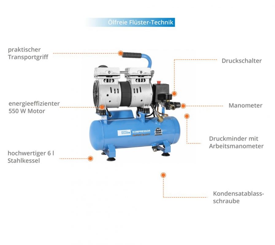 Компресор Airpower 110/8/6 SILENT, GUDE 50134 – много тих