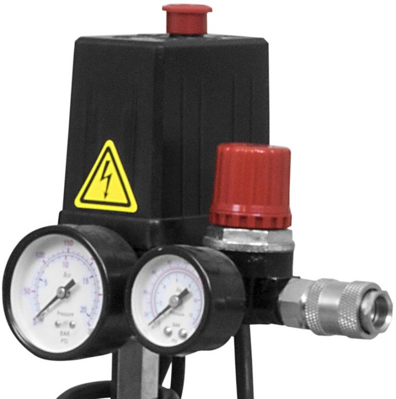Mощен двуцилиндров компресор с работно налягане до 10 бара и капацитет на резервоара 100 литра. Осигурява въздушен дебит от 412 л/мин при ниско налягане и 118 л/мин при максимално налягане, подходящ за различни пневматични инструменти. Компресорът разполага с две бързи съединителни връзки, гумирани колела за лесно преместване и е с маслено смазване за дълъг експлоатационен живот.