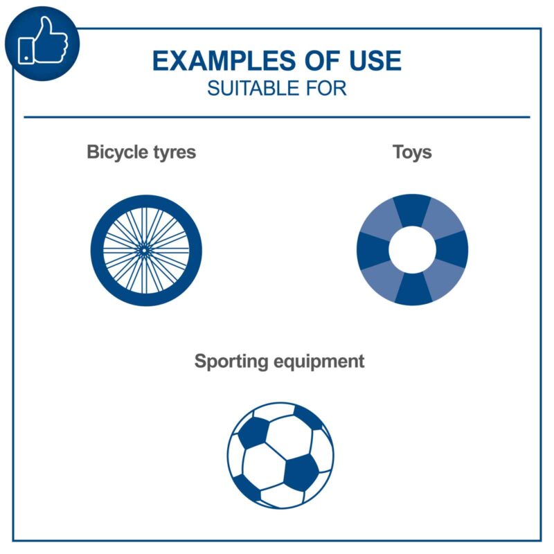 Подходящ за мотоциклетни гуми, гумени лодки, играчки, топки и др.
