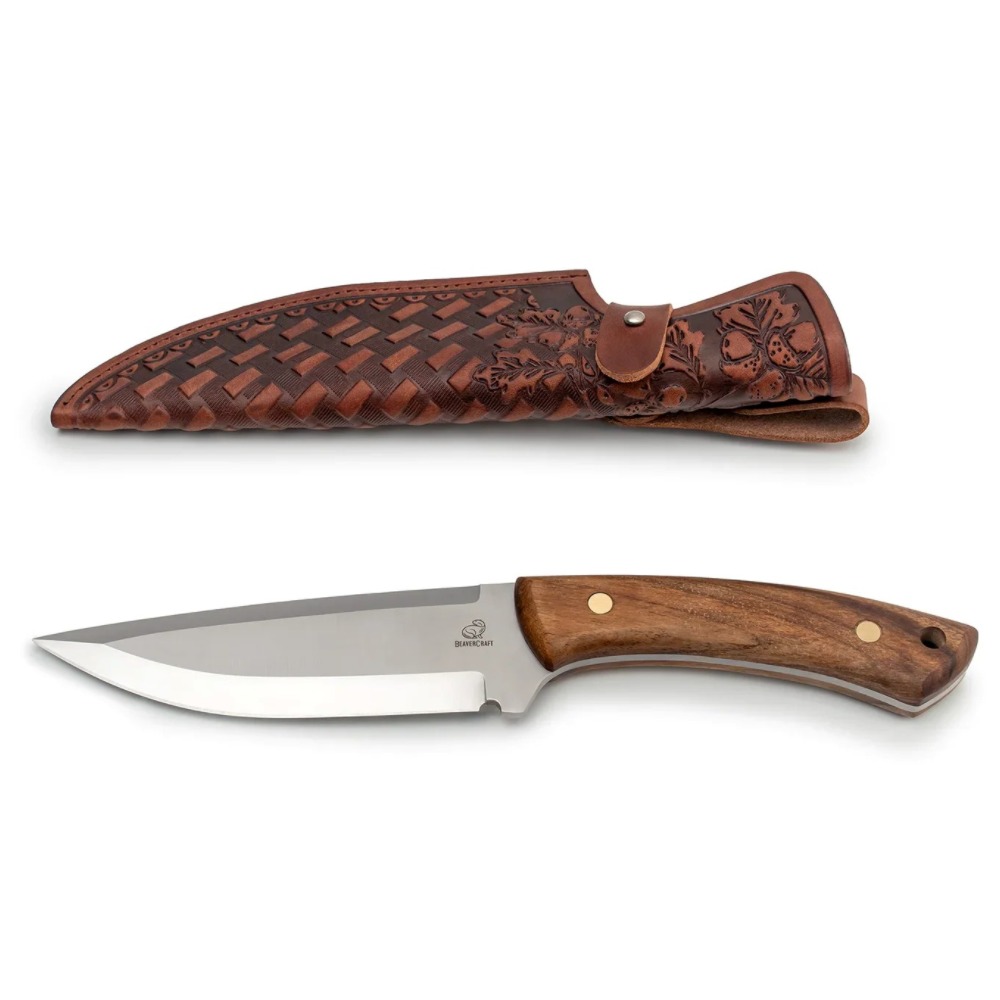 Ловният нож се предлага с красиво изработена, висококачествена кожена кания от телешка кожа, с халка за удобно носене на колан, която гарантира сигурното му съхранение. Надеждното закопчаване предотвратява изпадането на ножа по време на движение.
