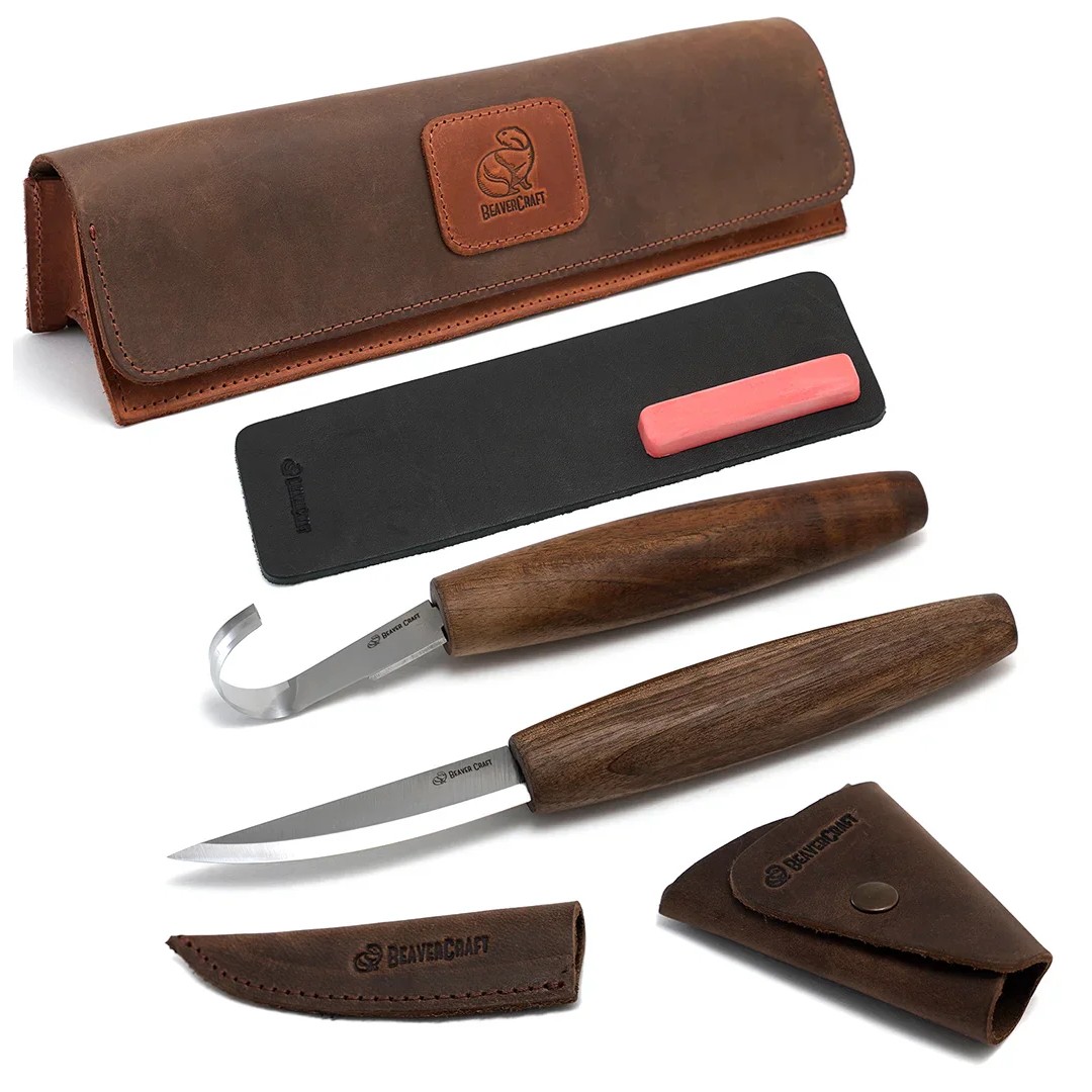 В основата на комплекта са два незаменими ножа: нож за обща резба и оформяне на детайли, както и нож за издълбаване на лъжици, предназначен за кухини и фини, сложни канали. Майсторски изработени от високовъглеродна стомана, остриетата пристигат бръснещо остри, готови да превърнат идеите ви в реалност.