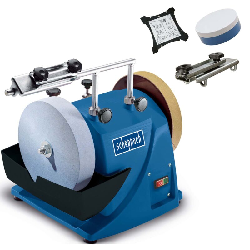 Машината за заточване Tiger 7000s с мощност 200 W, модел Scheppach 5903206901, е висококачествен инструмент, предназначен за заточване на различни видове режещи инструменти. Тя е оборудвана с редица аксесоари и функции, които гарантират ефективност и удобство при работа. Ето основните характеристики и компоненти, включени в комплекта: