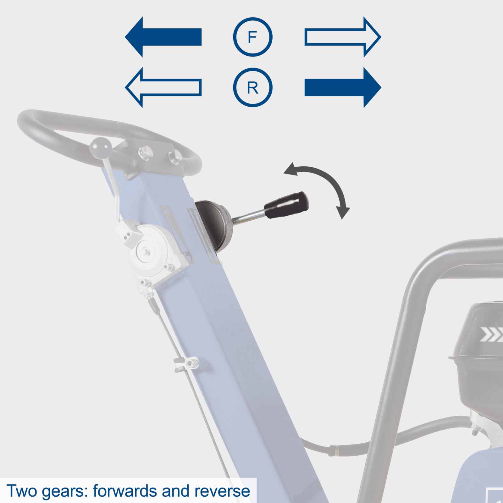 Дръжката е с антивибрационна защита, а скоростта на движение достига 25 м/мин, което значително улеснява работата дори на големи площи.