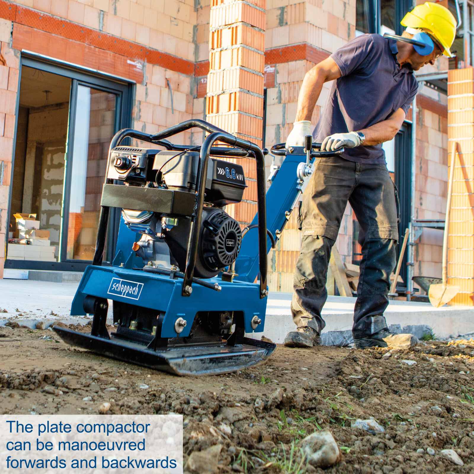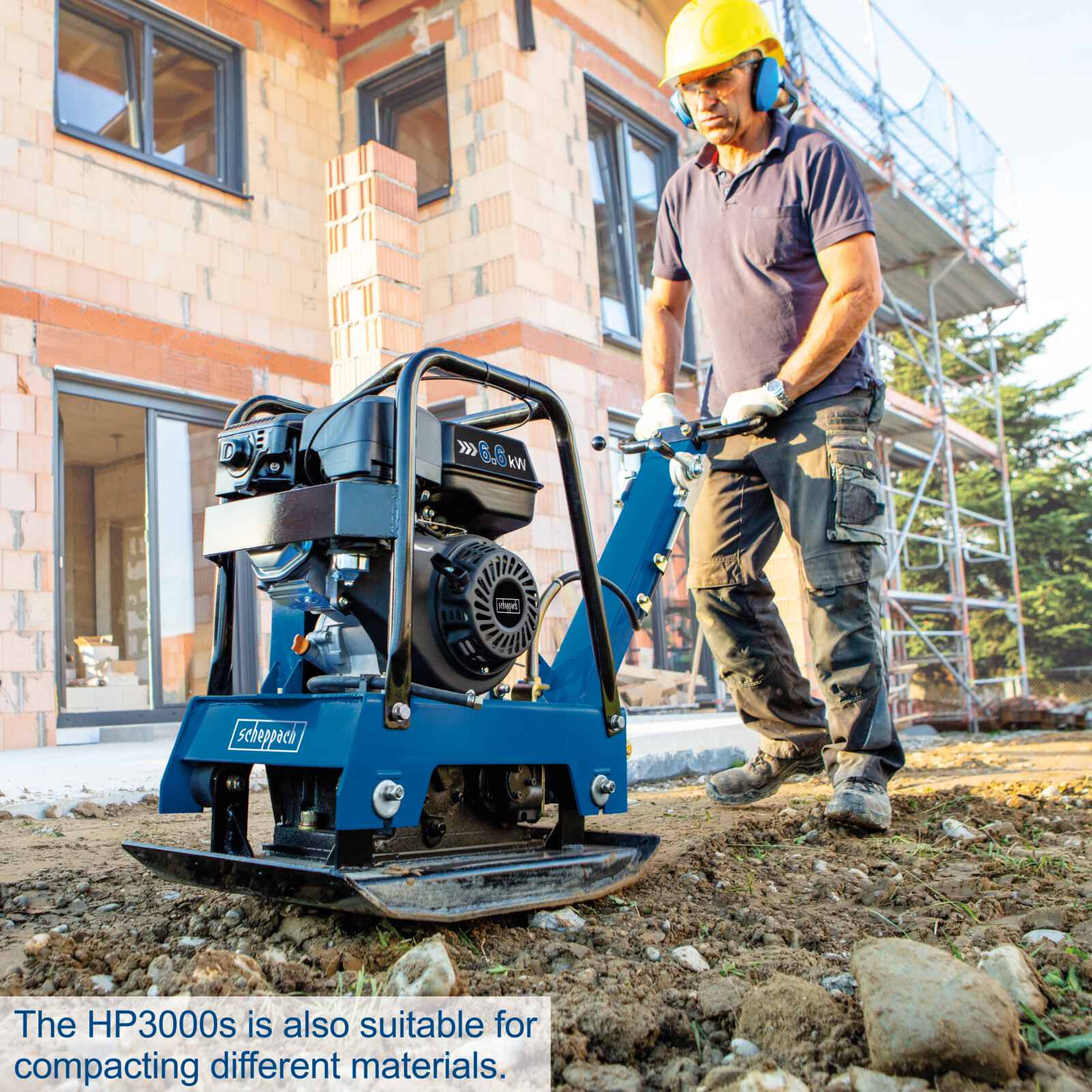 Моторната трамбовка / виброплоча Scheppach HP3000S е високоефективен и тежък уред за интензивно професионално уплътняване при строителство на пътища, фундаменти, площадки и настилки.