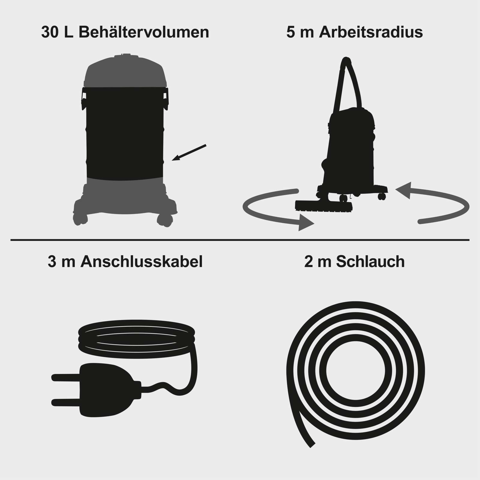 Scheppach WDV30V2-BE е практична и универсална прахосмукачка за сухо и мокро почистване, идеална за дома, работилницата и гаража. С вместимост от 30 литра и здрав контейнер от неръждаема стомана, тя е подходяща и за по-големи замърсявания.