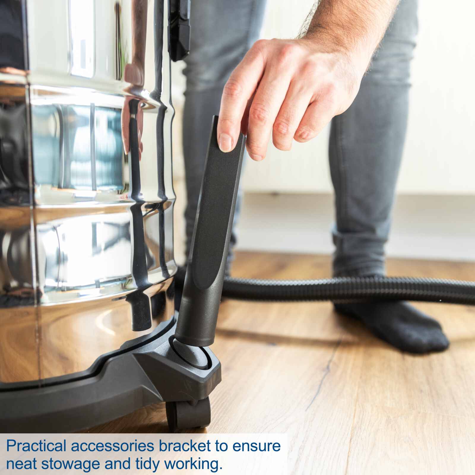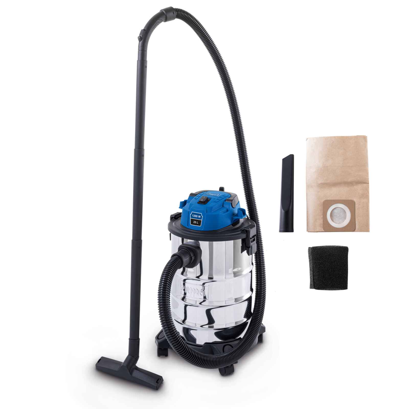 Универсалната електрическа прахосмукачка Scheppach VC25 е подходяща за мокро и сухо почистване. Благодарение на 1200 W мотор и 25 л обем на контейнера от неръждаема стомана, той осигурява висока ефективност и дълготрайност. Компактен и лесен за транспортиране с 3 м кабел, включени тръби за удължение и 4 вградени колелца за лесно преместване, VC25 е идеален помощник за дома, гаража и работилницата.