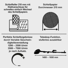 • Голяма работна площ благодарение на 215 мм шлифовъчна глава
