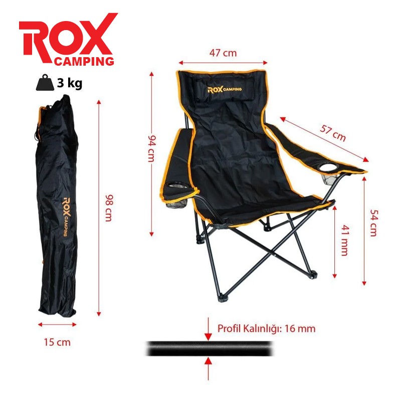 Сгъваем стол за къмпинг – черен, ROX 153CAMP0315