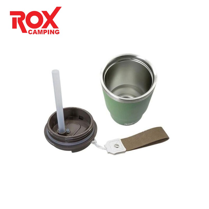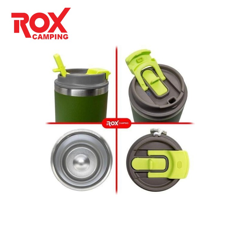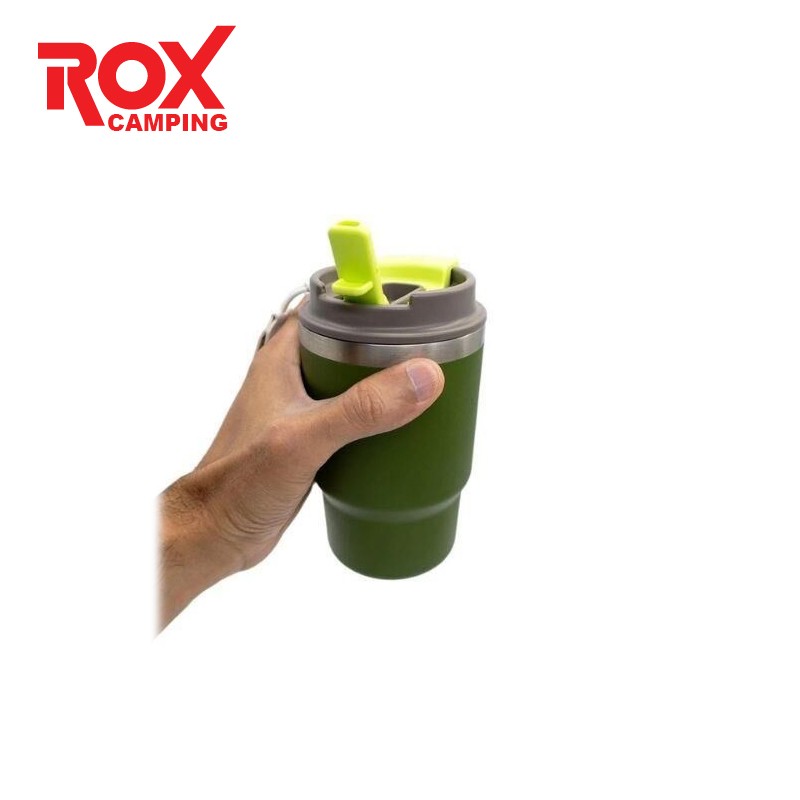 Термочаша за кафе със сламка 0.45 л – зелена / ROX 153CAMP0194 /