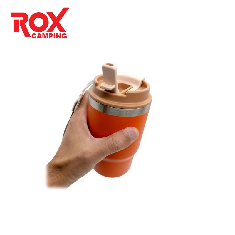 Термочаша за кафе със сламка 0.48 л – оранжева / ROX 153CAMP0195 /