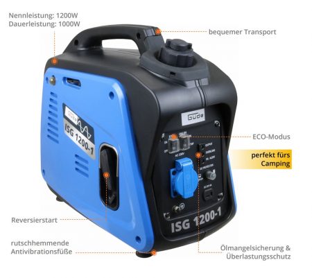 Тих Инверторен електрогенератор, 1200W GUDE ISG 1200-1 / 40719 /