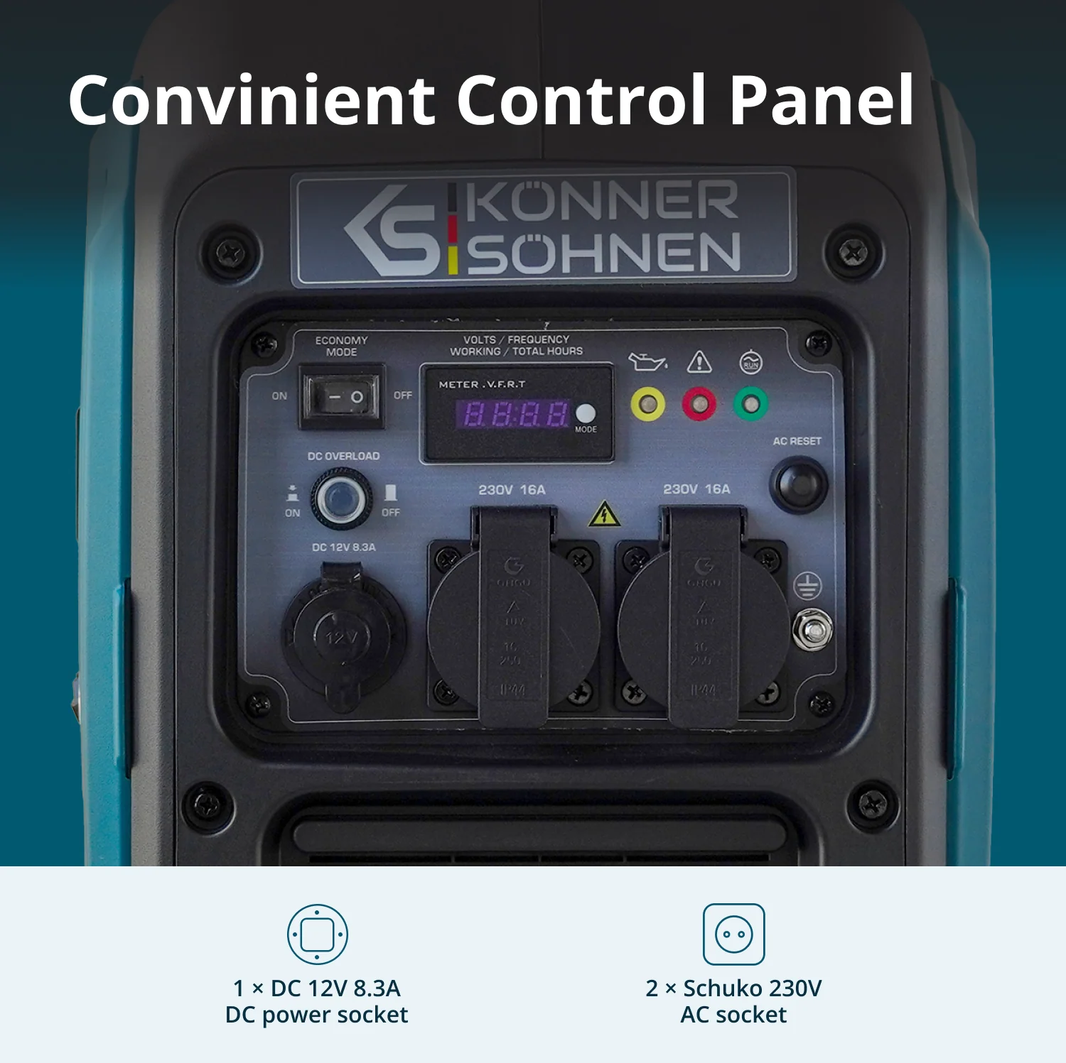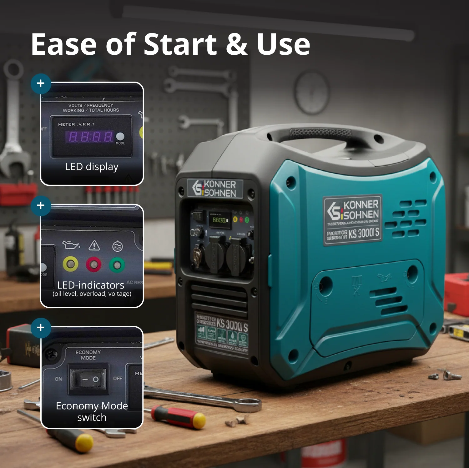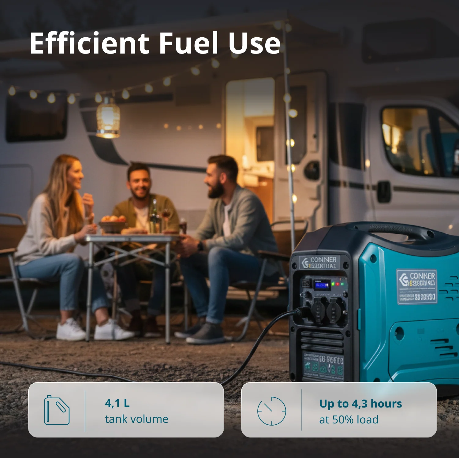 Инверторната технология с чиста синусоида осигурява безопасно захранване за лаптопи, телевизори и друга електроника, докато Eco-Mode оптимизира разхода на гориво и осигурява до 4 часа работа с един 4-литров резервоар