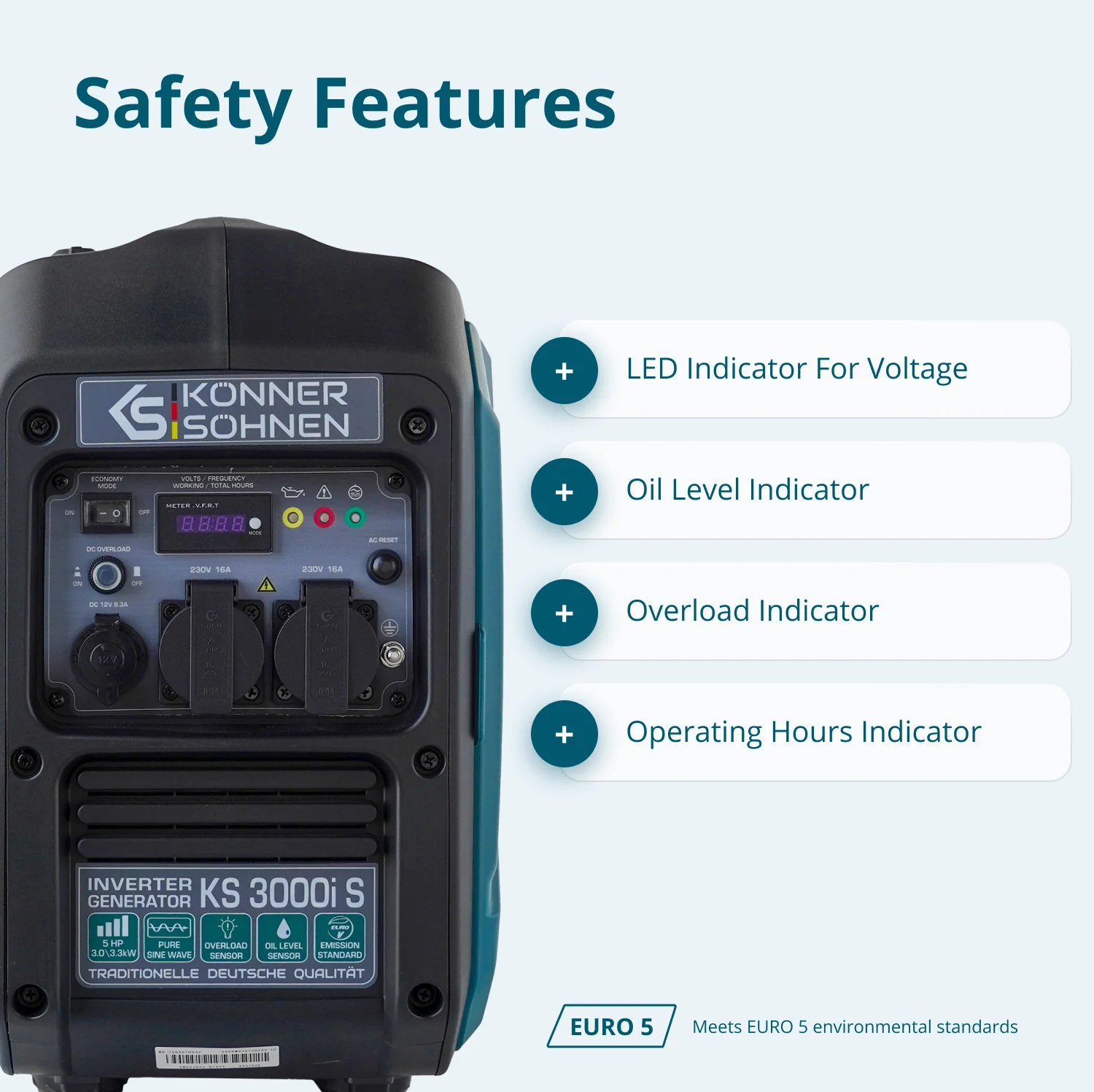 Благодарение на два изхода от 230 V и изход от 12 V, този преносим генератор е многофункционален, надежден и отговаря на строгите стандарти Euro 5