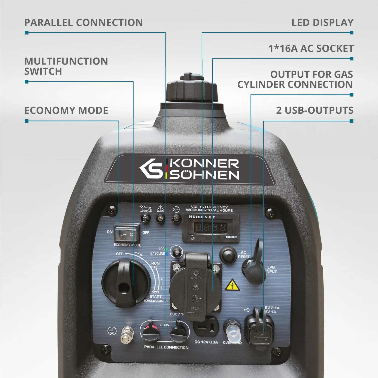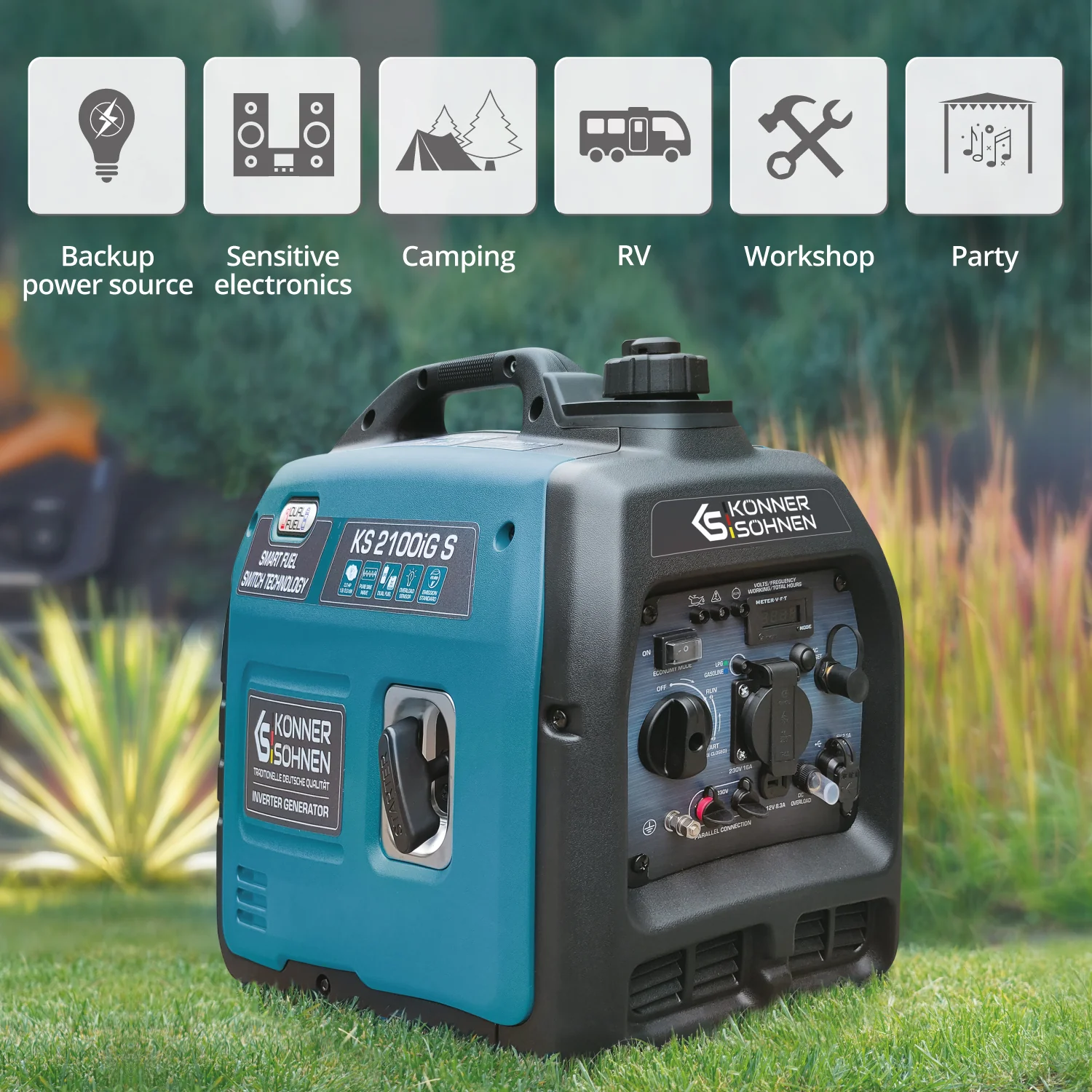 Планирате покупка на надежден генератор за дома, офиса или къмпинга? LPG/Бензиновият инверторен генератор KS 2100iG S от Könner amp; Söhnen е идеалният избор за вас!