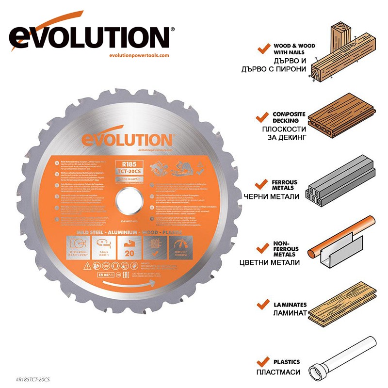 Универсален диск за циркуляр 210мм, 24 зъба / Evolution R210TCT-24MS-1083 /