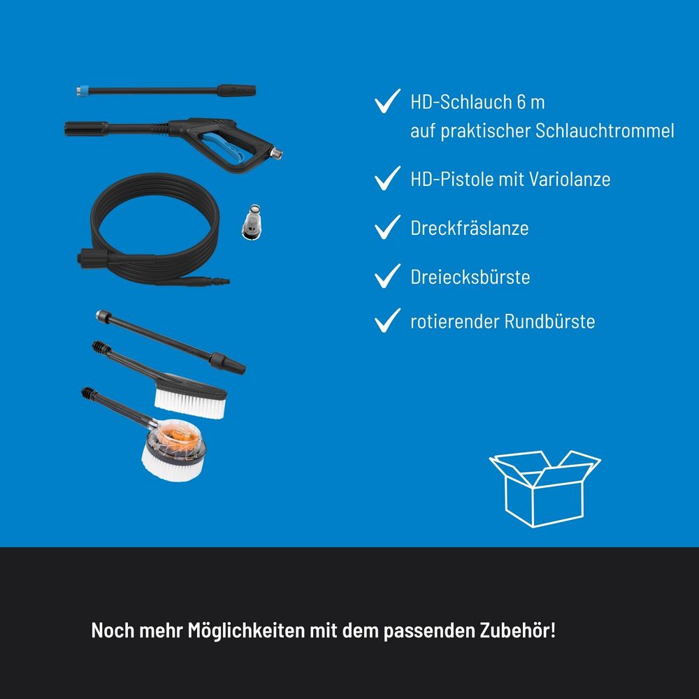 С максимално налягане от 165 bar и дебит от 432 литра на час, този модел е подходящ за почистване на автомобили, градинска техника, тераси, дворове и фасади.